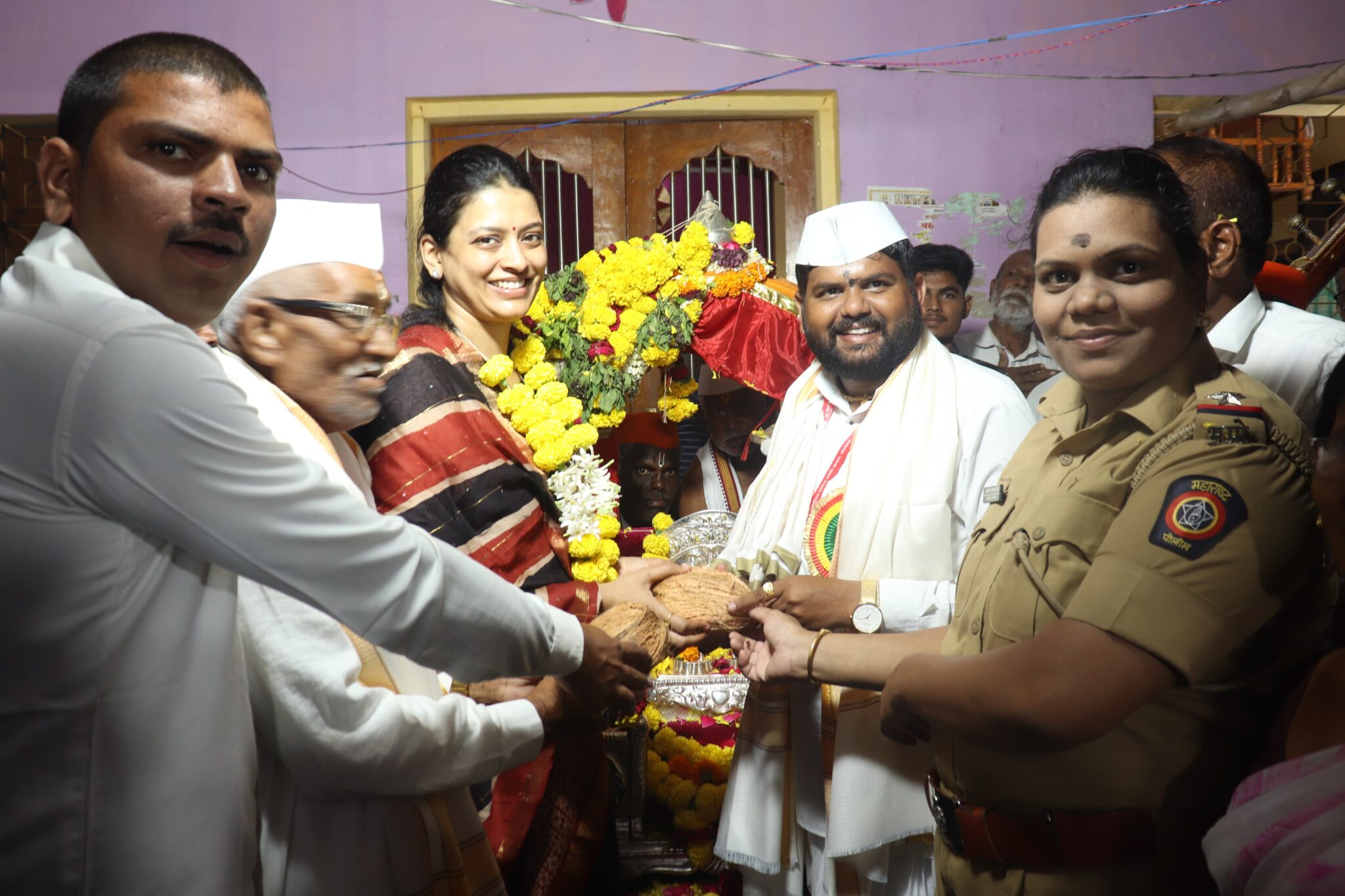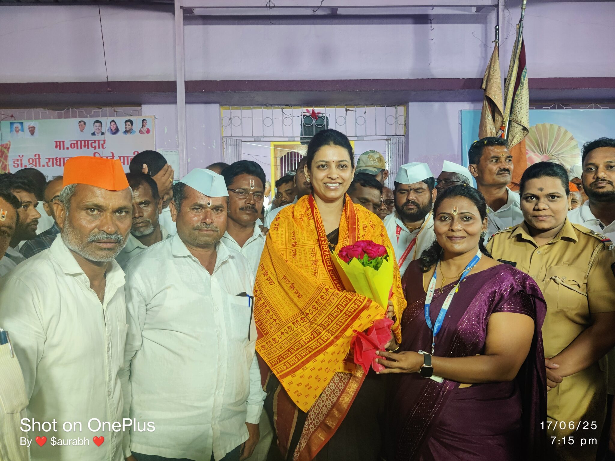 या भव्यदिव्य पालखी सोहळ्यासाठी विखे कुटुंबियाच्या वतीने डॉक्टर सुजय दादा विखे पाटील यांच्या धर्मपत्नी धनश्री ताई यांनी भेट देऊन वारकऱ्यांचे व गावाचे आभार मानले.
