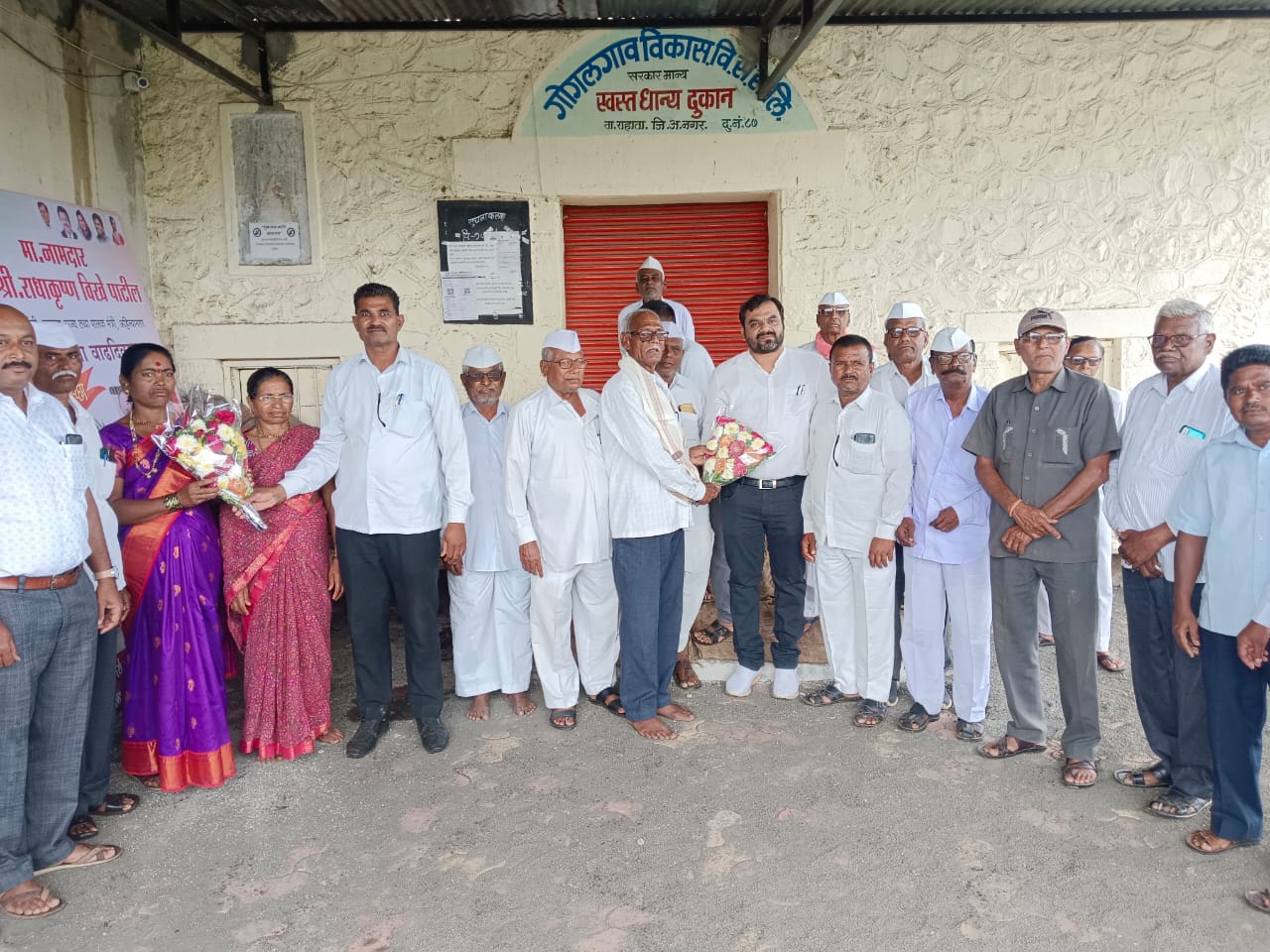 गोगलगाव येथील सहाय्य निबंधक- नामदेव ठोंबळ कार्यालयात सोसायटीचे तत्कालीन चेअरमन यांच्या अध्यक्षतेखाली पार पडलेल्या संचालक मंडळाच्या बैठकीत रिक्त जागेसाठी चेअरमन पदी श्री.चंद्रभान गेणुजी चौधरी यांची तर व्हा. चेअरमन पदी गंगुबाई भाऊसाहेब मगर यांची सर्वानुमते बिनविरोध निवड करण्यात आली.